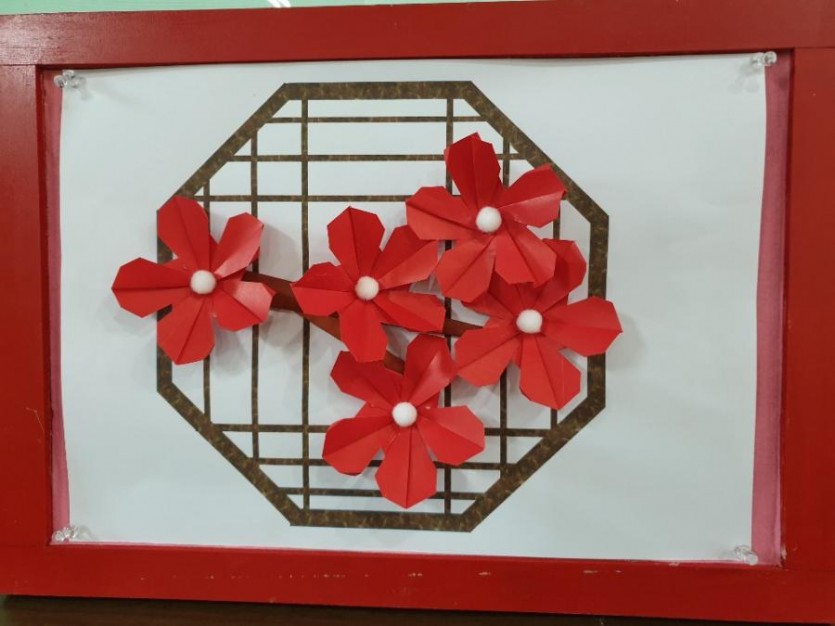 프로그램 활동사진 인지/공예/매화꽃 접어 액자 완성하기